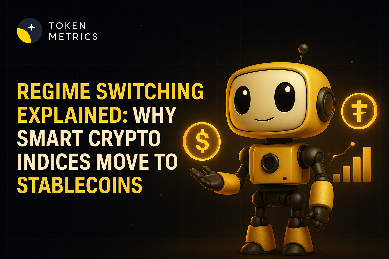 The best trade in crypto isn't always a trade—sometimes it's knowing when to step aside. While traditional indices force you to ride every crash from peak to bottom, regime-switching indices take a smarter approach: participate when conditions warrant, preserve capital when they don't. This systematic method of moving between crypto exposure and stablecoins has become the defining feature of next-generation index products, with Token Metrics leading the implementation through data-driven market signals.