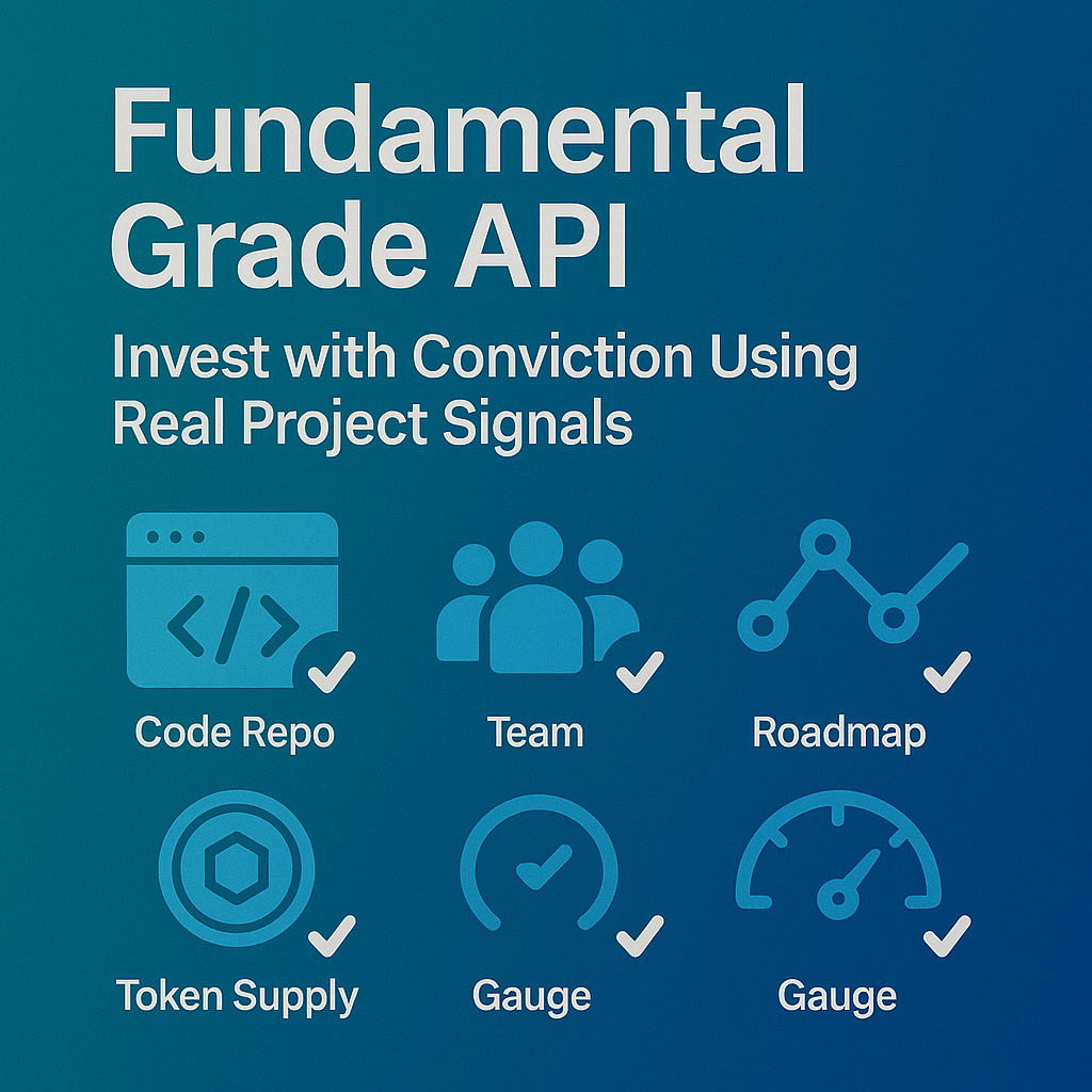 Most traders chase price action; Fundamental Grade API helps you see the business behind the token—community traction, tokenomics design, exchange presence, VC signals, and DeFi health—consolidated into one score you can query in code. In a few minutes, you’ll fetch Fundamental Grade, render it in your product, and ship a due-diligence UX that drives trust. Start by grabbing your key at the Get API Key page, Run Hello-TM to verify your first call, then Clone a Template to go live fast.