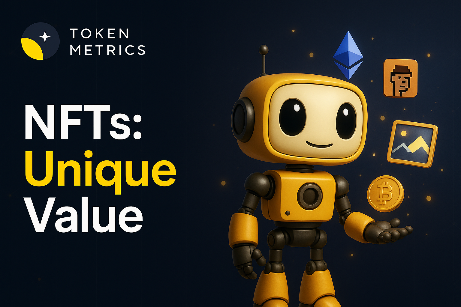 NFTs establish verifiable ownership, scarcity, and transferability for digital assets through blockchain technology. Their value arises from provenance, limited supply, utility, social signaling, and investment potential. With the market projected to grow significantly, understanding NFTs is essential for engaging with the evolving digital landscape. Navigating this space effectively requires robust data, market analysis tools, and strategic insight, which platforms like Token Metrics can provide to support informed decision-making in digital asset management.