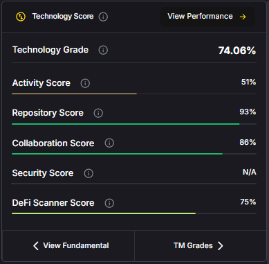 Fundamental Grade aggregates multiple project-quality signals into a normalized score and label (e.g., Strong / Average / Weak). Typical sub-signals include: