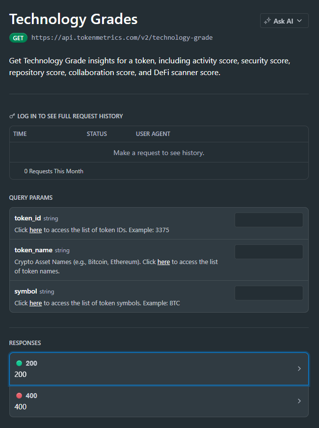 Hype is loud, but code is what lasts. The Technology Grade API helps you measure the engineering strength behind a token—scalability, innovation, and real code quality—so you can prioritize serious projects in your bots, dashboards, or research tools. In this guide, you’ll query the /v2/technology-grade endpoint, embed the score in your UI, and ship a feature that turns technical due diligence into a single actionable signal. Start by grabbing your key at Get API Key, Run Hello-TM to validate your first call, then Clone a Template to go live fast.