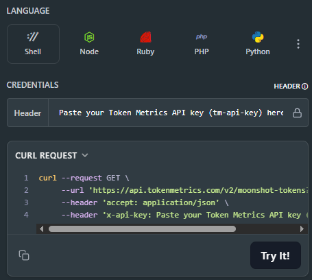 The Moonshots API cURL request is right there in the top right of the API Reference. Grab it and start tapping into the potential!