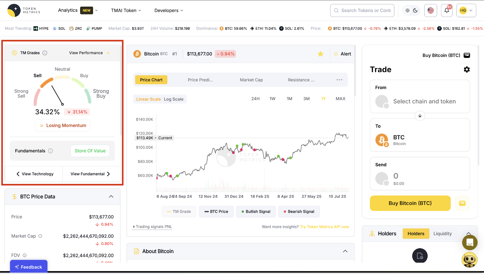 - Screener/Leaderboard: Rank tokens by TM Grade and highlight movers.