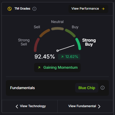 TM Grade blends multiple evidence streams—technical momentum, market structure, sentiment, and other model inputs—into a single normalized score (e.g., 0–100) and a label (Strong Sell to Strong Buy). This opinionated synthesis is what separates TM Grade from raw market data: it’s designed to be actionable.