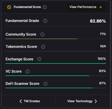 - Due-Diligence Token Page: Show Fundamental Grade with a component breakdown (community, tokenomics, exchange presence, VC, DeFi).