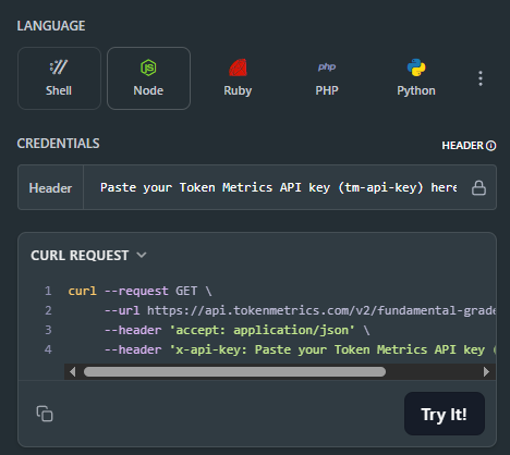 The Fundamental Grade is easily accessible in the top right of the API Reference. Grab the cURL request for seamless access!